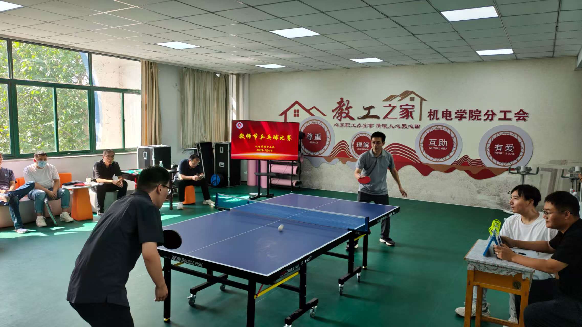 2025年9月10日下午,机电学院分工会在学院职工小家隆重举办了喜迎教师节乒乓球比赛,旨在丰富教职工业余文化生活,增强团队凝聚力,同时响应国家全民健身号召。比赛吸引了全院教职工踊跃参与,现场气氛热烈,充分展现了机电人昂扬向上的精神风貌。