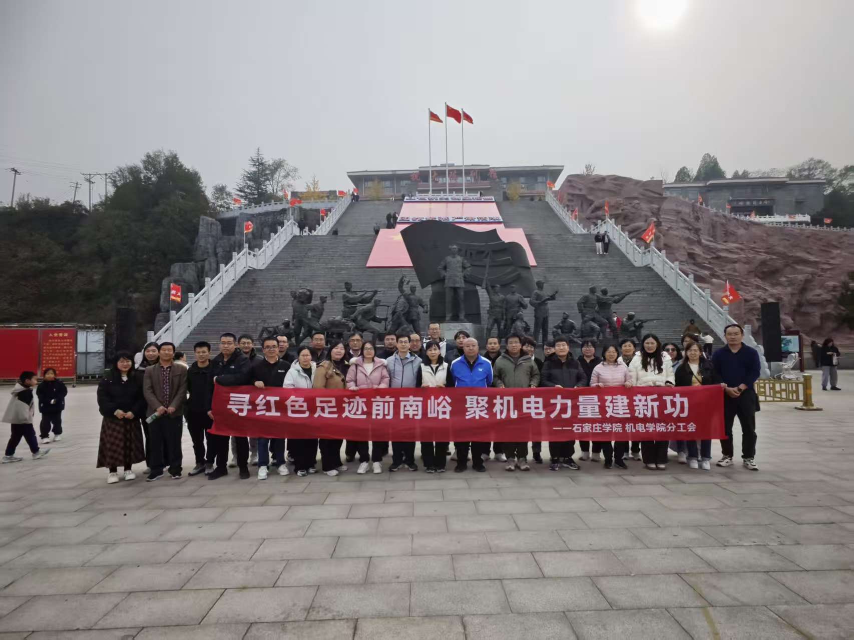 为激发创新活力、凝聚奋进力量,2025年10月25日,机电学院分工会积极响应校工会号召,组织全体教职工赴邢台前南峪开展“寻红色足迹前南峪,聚机电力量建新功”登山活动。本次活动通过参观中国人民抗日军政大学(抗大)纪念馆、攀登坐化山红色教育基地、实地考察前南峪社会主义新农村建设成果,将红色教育与乡村振兴实践深度融合,为学院高质量发展注入精神动力。