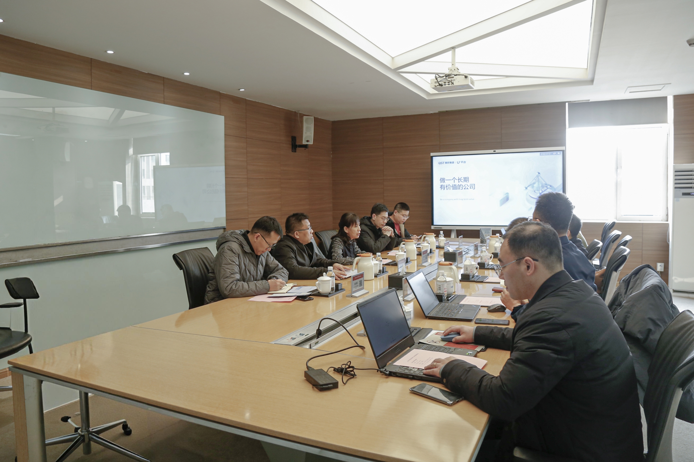 在董事长刘全的陪同下,机电学院一行首先参观了集团展厅。副总裁李刚详细介绍了青软集团的发展历程、业务布局及核心优势,重点展示了集团在集成电路、人工智能等领域的技术成果、实训解决方案以及U+新工科智慧云平台的应用情况。通过实地参观,学院教师深入了解了企业在数字化人才培养领域的产业实力和发展愿景。