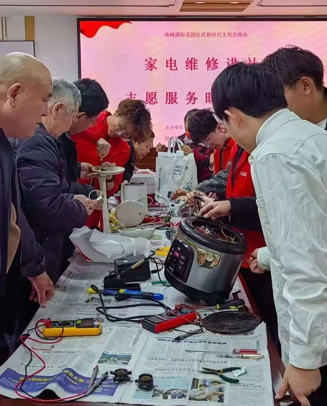 近日,在珠峰国际花园社区2025年度党建年会中,我院获评“2025年度优秀共驻共建单位”。该项荣誉是对机电学院一年来组织青年志愿者深入社区、持续开展家电维修服务的高度认可,也体现了学院党总支与社区党建互联共建的扎实成效。