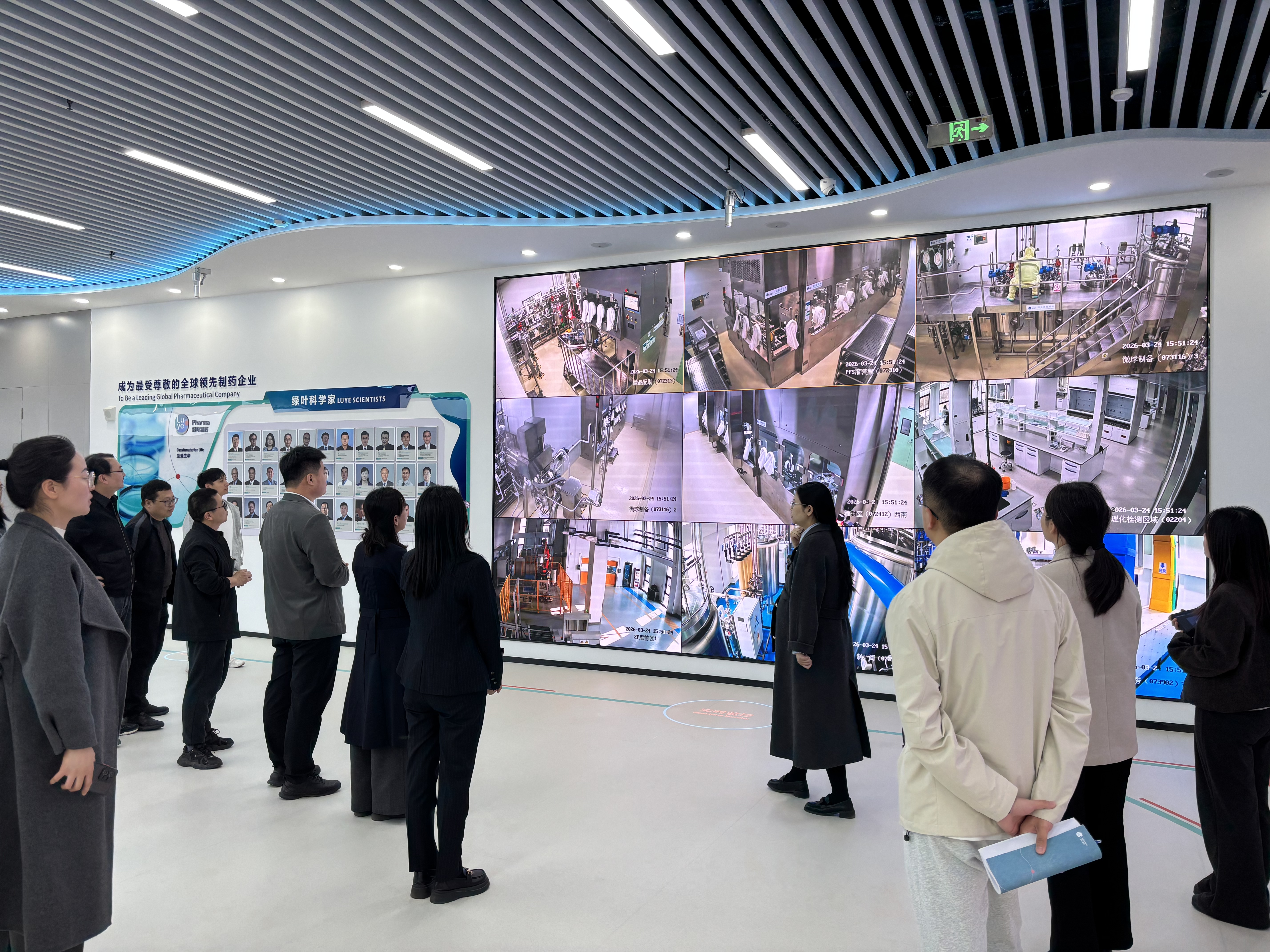 在绿叶嘉奥制药石家庄有限公司,调研组首先参观了公司展厅,通过实时监控录像详细了解了企业的生产流程、产品体系、企业规模及核心竞争力。企业方面展示了其科技创新产品、研发实力以及未来的拓展板块。