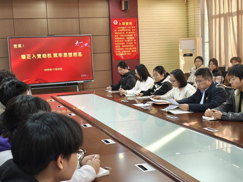 2025年11月20日,机电学院学生党支部在学院会议室举行2025年入党积极分子培训班开班仪式暨“红色读书会”主题活动。机电学院党总支副书记韩光磊、学生党支部书记张红霞,全体2025年新发展的入党积极分子参加。