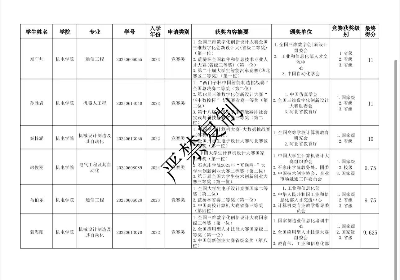 据悉,本年度“知行奖学金”的获奖情况集中体现了学院以赛促学、鼓励创新的育人成果。在最终获奖的17名学生中,共有15名凭借在省级及以上学科与文体竞赛中的优异成绩,荣获“竞赛类”奖学金;另有1名同学因在高水平期刊发表科研论文获评“科研类”奖学金,1名同学则因其成熟的创业项目运营获评“创新创业类”奖学金,具体名单见《机电学院关于拟推荐参评石家庄学院知行奖学金人员的公示》。