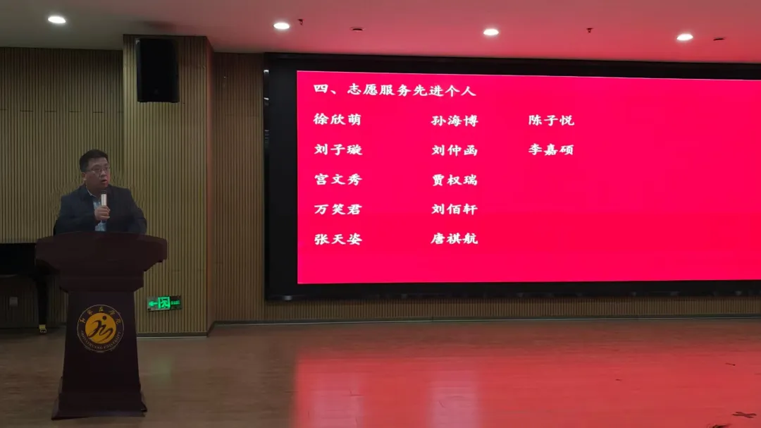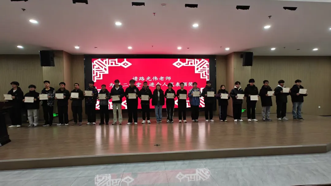 党总支副书记韩光磊宣读本学期获奖名单,与会领导与辅导员老师为优秀学生干部、优秀干事、第二课堂先进个人等五大类个人奖项,以及第二课堂先进班级、优秀团支部等颁奖。表彰他们在责任担当、服务奉献、实践创新等方面的突出表现。