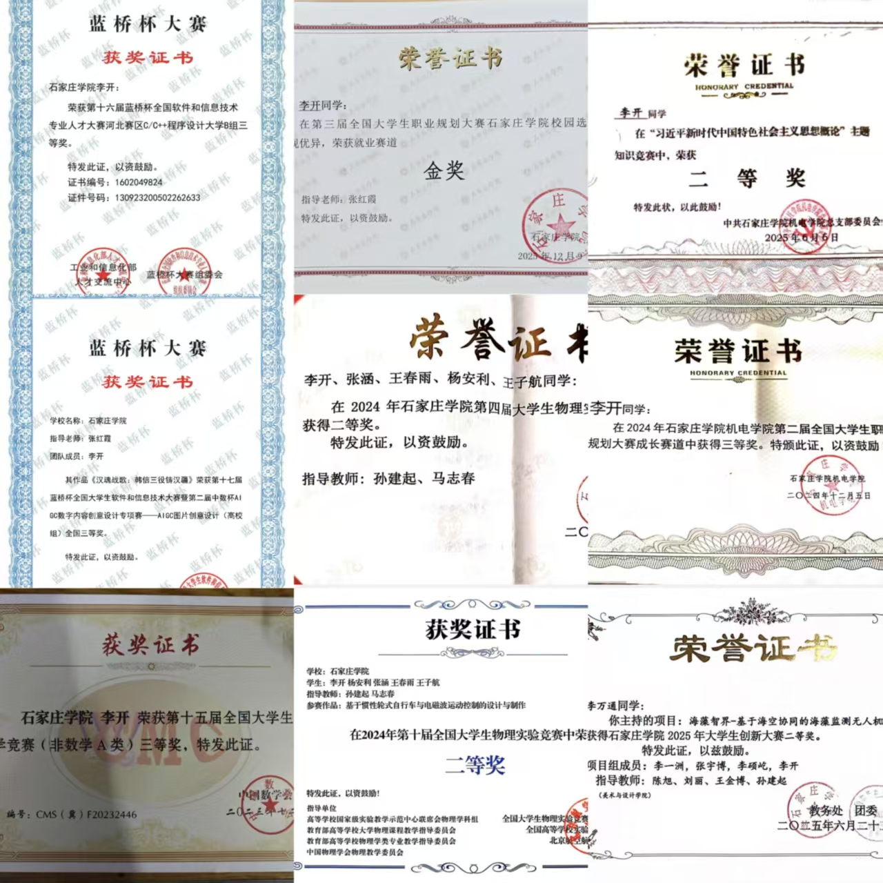 积极参与科研与竞赛活动,专注于MCU嵌入式系统开发。通过比赛实践熟悉了MCU底层驱动、FreeRTOS任务调度及传感器集成等关键技术,能独立解决系统调试和优化等问题。在全国大学生物理实验竞赛中获国家级二等奖,在全国大学生数学竞赛、蓝桥杯程序设计大赛中取得省级奖项。通过参加这些竞赛使他深刻领悟到:纸上得来终觉浅。要敢于跨出专业舒适区,像物理实验一样严谨地对待数据,像程序竞赛一样敏锐地优化逻辑。不要畏惧比赛中的博弈与高压,那些推倒重来的时刻,正是你从平庸迈向卓越的必经之路。